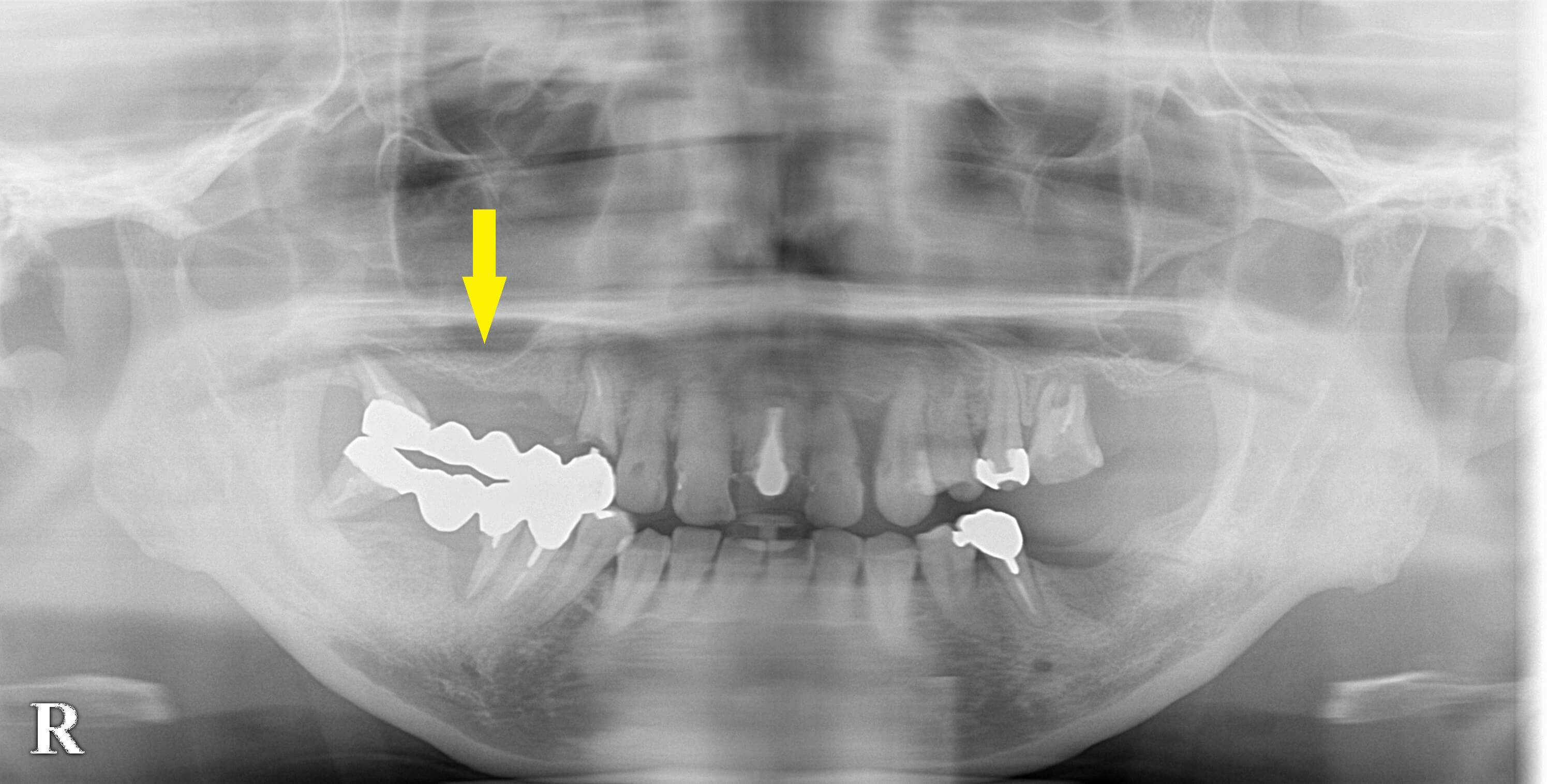 ダメになったブリッジをインプラントで 今週のインプラント症例 2020.11.202026.01.16 患者様は名古屋在住の50代女性。 右上顎のブリッジがグラグラになり、同部のインプラント治療を希望されて相談にお出でになりました。 犬歯から後方に長いブリッジが装着されていたのですがほぼ外れてしまった状態でした。 インプラントを埋入するには骨が薄いため、抜歯後、まずはサイナスリフトという骨造成を行い、十分な骨量を確保して、本日インプラント埋入術を行いました。 下の写真上段が術前のレントゲン写真、2段目が術前のCT、3段目がサイナスリフト後、4段目がインプラント埋入後のCTです。 症例・コラム一覧に戻る