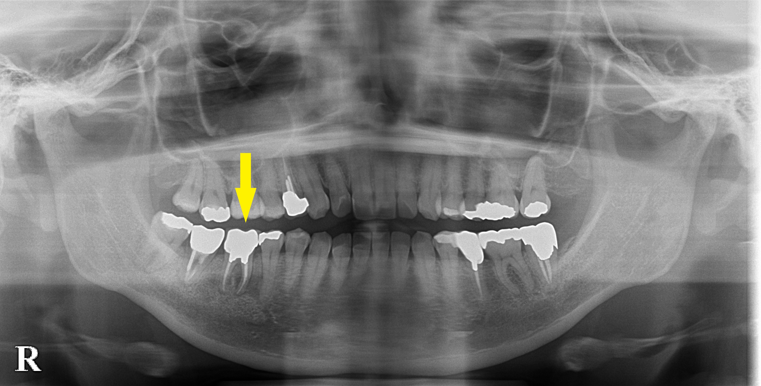 右下顎の奥歯が腫れて、ひどく痛んだため、通院していた歯科医院を受診したところ、右下顎の第一大臼歯は状態が悪く抜歯しなければならないと言われたそうです。