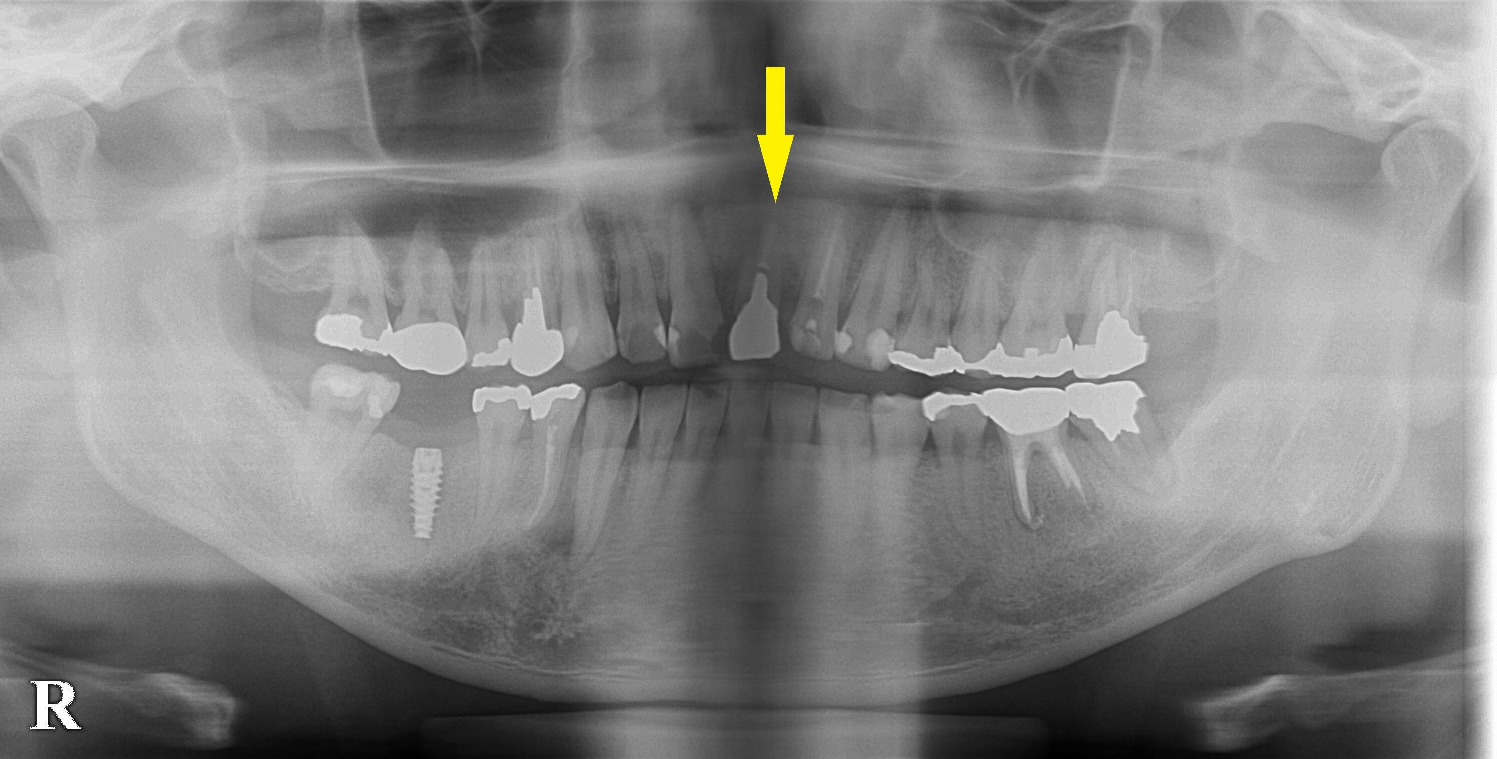 歯根が破折しており、抜歯して、インプラントが必要と言われたそうです。