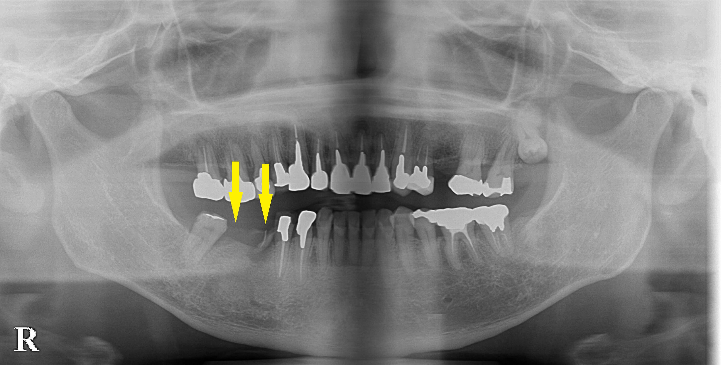 奥歯のダメになったブリッジをインプラントで 今週のインプラント症例 2022.03.252026.01.19 患者様は名古屋在住の40代女性。 右下顎に装着されていたブリッジの、前方の支えになっていた歯が折れてしまいブリッジが外れてきたそうです。 この部位のインプラント治療を希望されて、来院されました。 骨の量は問題ありませんでしたので、折れた歯は抜歯し治癒を待って、抜歯した部位とその後方に、2本のインプラント埋入術を行いました。 ブリッジの支えになっていたもう一方の歯は保存し冠を被せ直しました。 症例・コラム一覧に戻る