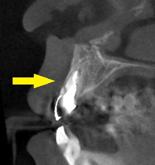 CTを撮影してみると、確かに歯根部分が破折を起こしていて、歯を支える歯槽骨の辺縁あたりで割れていました。