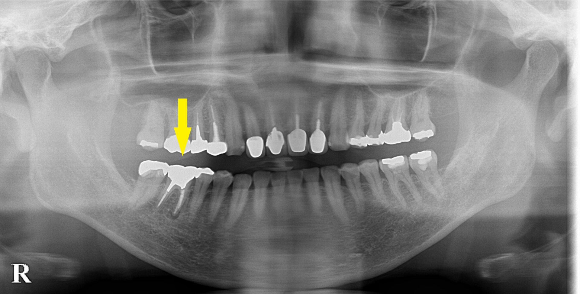 根の治療は十分されていて、この結果ですので、あきらめがつくようなら、抜歯、インプラントをお勧めしました。