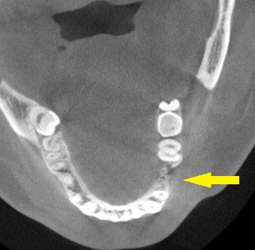 CTを撮影してみると、確かに、骨幅が狭く、十分な骨の厚みを確保してインプラントを長期に安定した状態にしたいとなると、骨を増やす手術が必要でした。