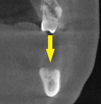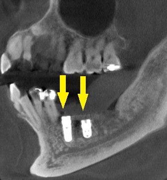 2本のインプラント埋入を目指したいのですが、2本目の部位では、下方に通っている神経までの距離は3~4mm程度でした。
