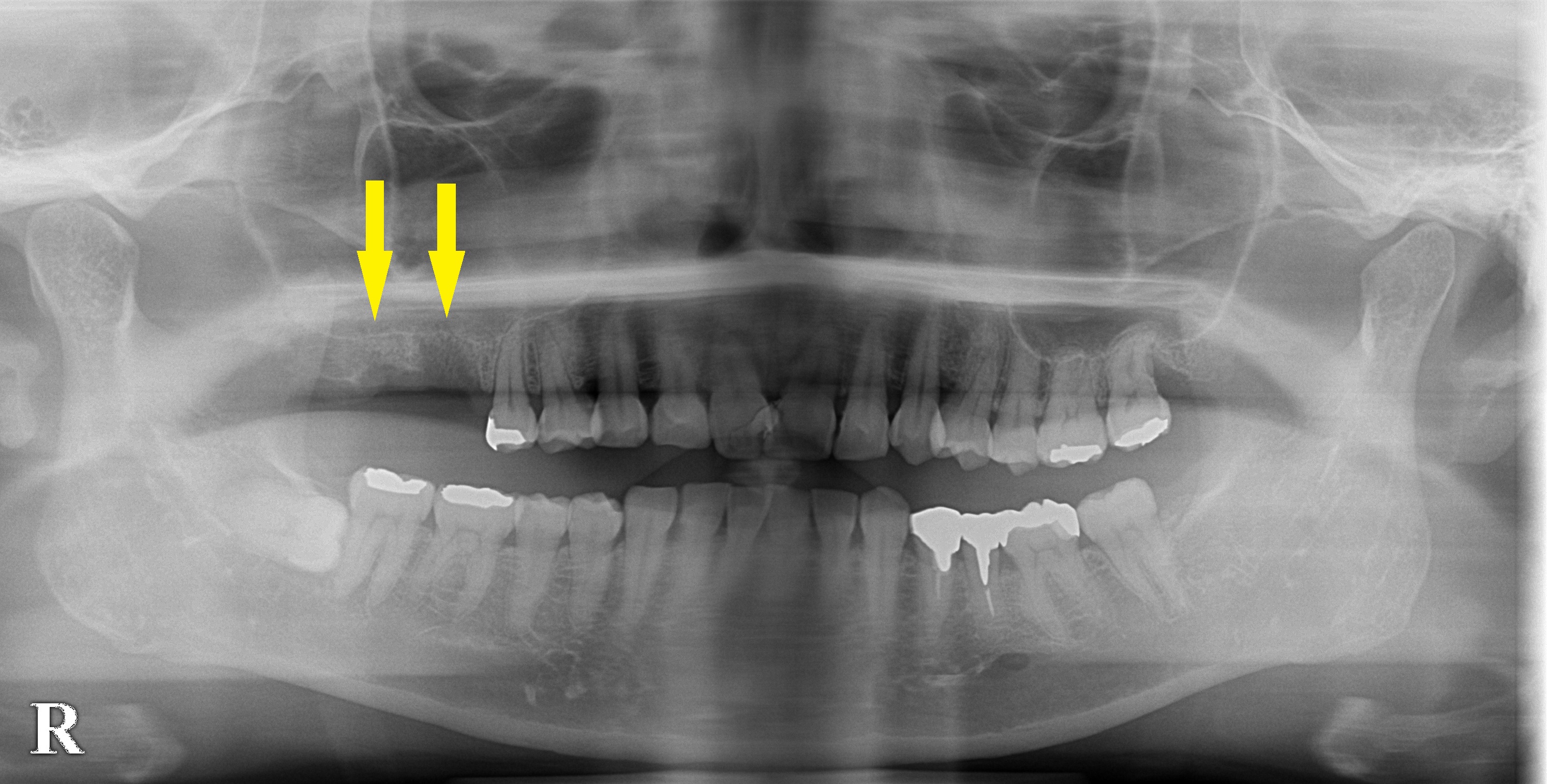 左上顎大臼歯2本を抜歯した後、骨が薄いため、サイナスリフトという骨造成術を行なった際にご紹介した患者様です。