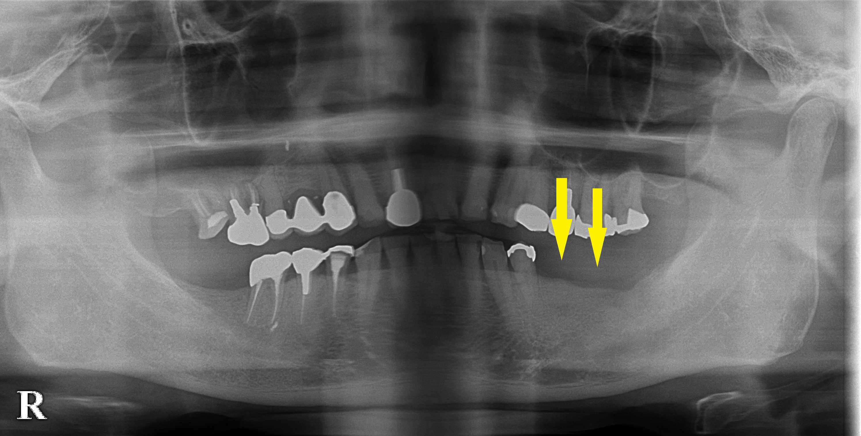 左下顎の臼歯が抜けて、義歯を入れられていたそうですが具合が悪く、インプラント治療を希望されて相談にお出でになりました。