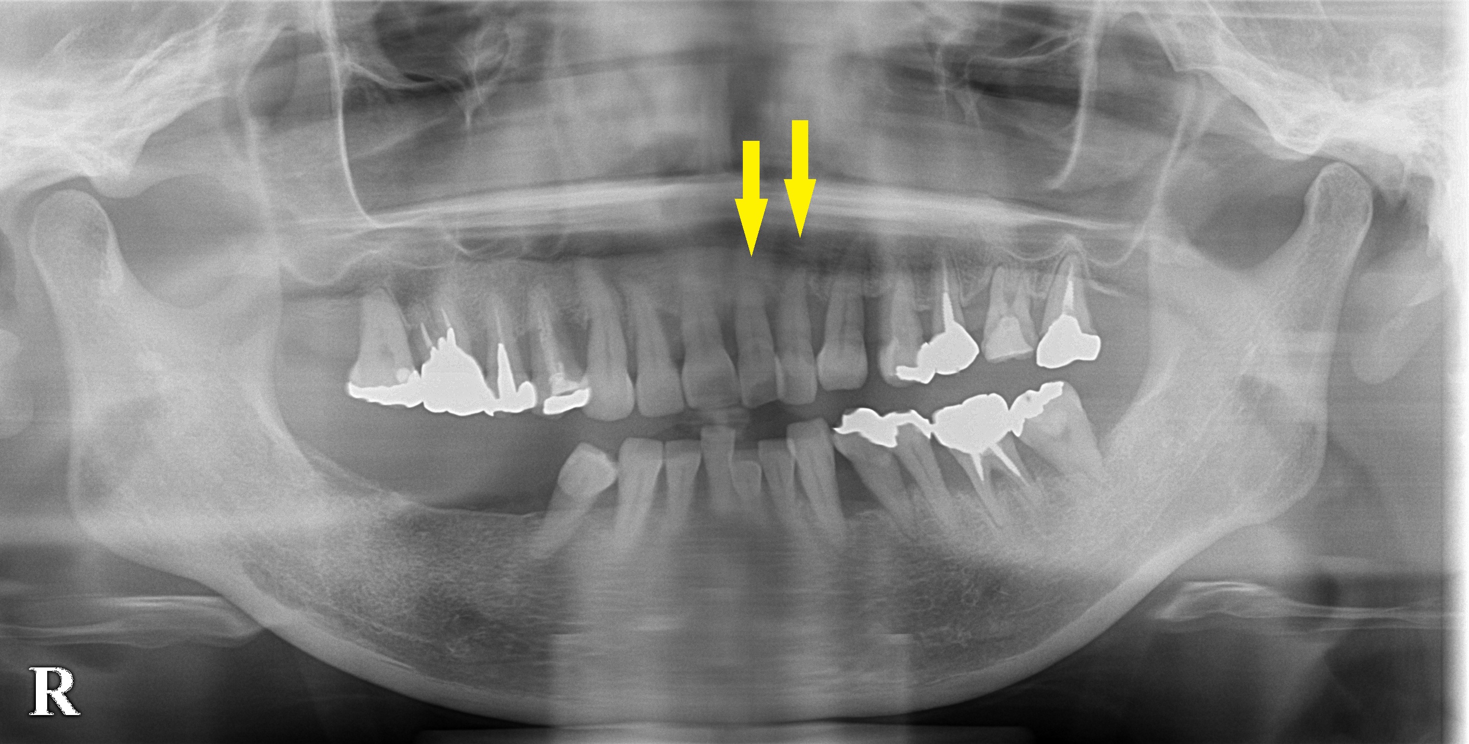 左側の上顎前歯2本がグラグラになっておりインプラント治療を希望されて来院されました。