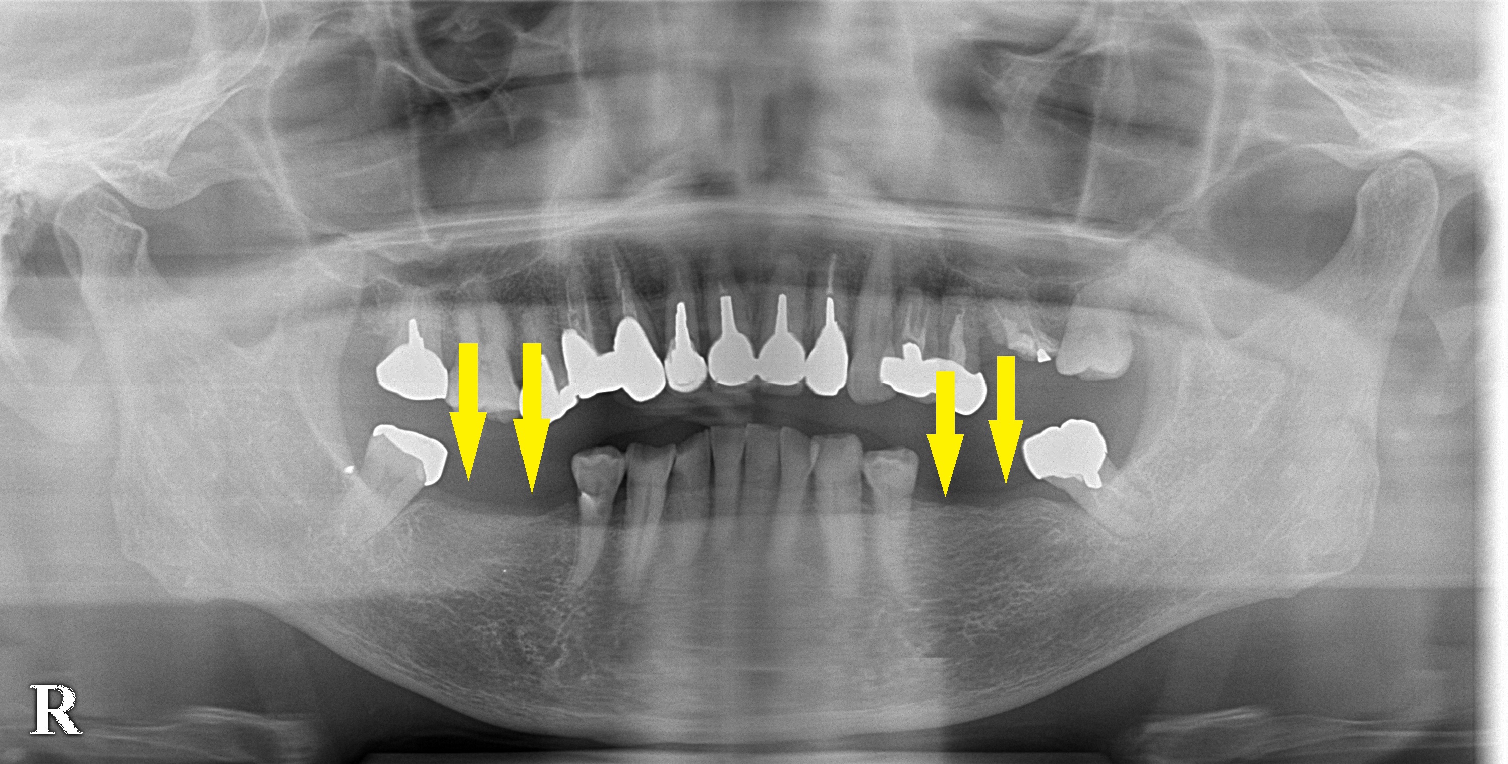数年前に両側の臼歯を抜歯、その後、義歯を使用されていたとのことですが決して快適ではなかったそうです。