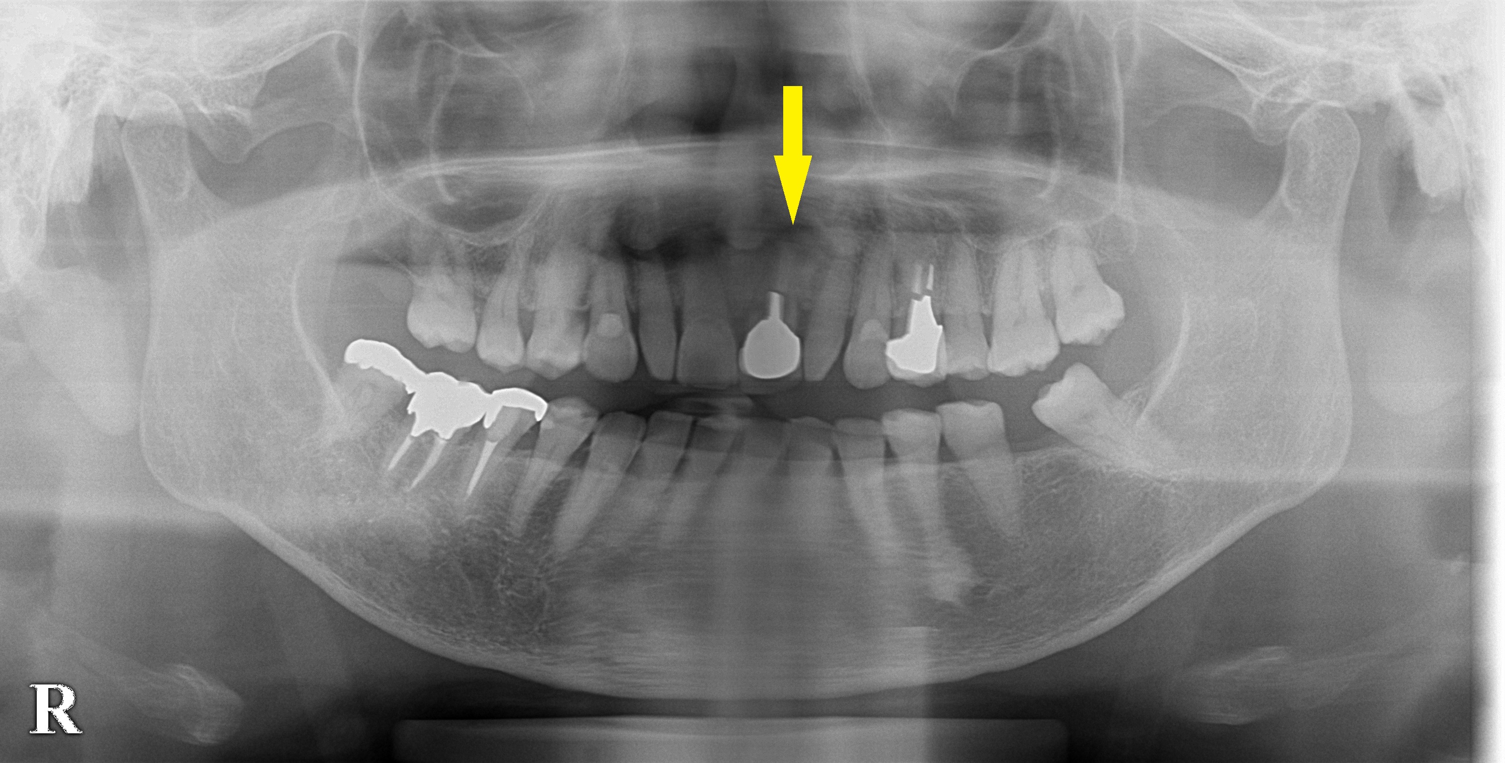 保存は困難と思われたので抜歯して、インプラント治療をお勧めしました。